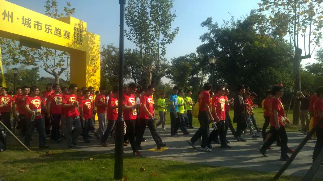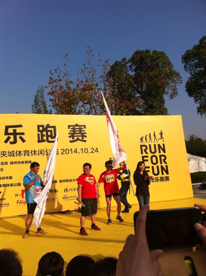 2014揚(yáng)州·城市樂(lè)跑賽在揚(yáng)州宋夾城體育公園盛大舉行。此次活動(dòng)匯聚揚(yáng)州政府機(jī)關(guān)、企事業(yè)單位、各界媒體、金融機(jī)構(gòu)、建筑單位等共計(jì)73個(gè)單位,約1400人報(bào)名參加。我院王院長(zhǎng)帶領(lǐng)“超人”團(tuán)隊(duì),90多人參與了此次活動(dòng),活動(dòng)包括賽前熱身、4.3公里不計(jì)時(shí)樂(lè)跑、賽后頒獎(jiǎng)等環(huán)節(jié),獲得主辦方頒發(fā)的最具人氣獎(jiǎng)!